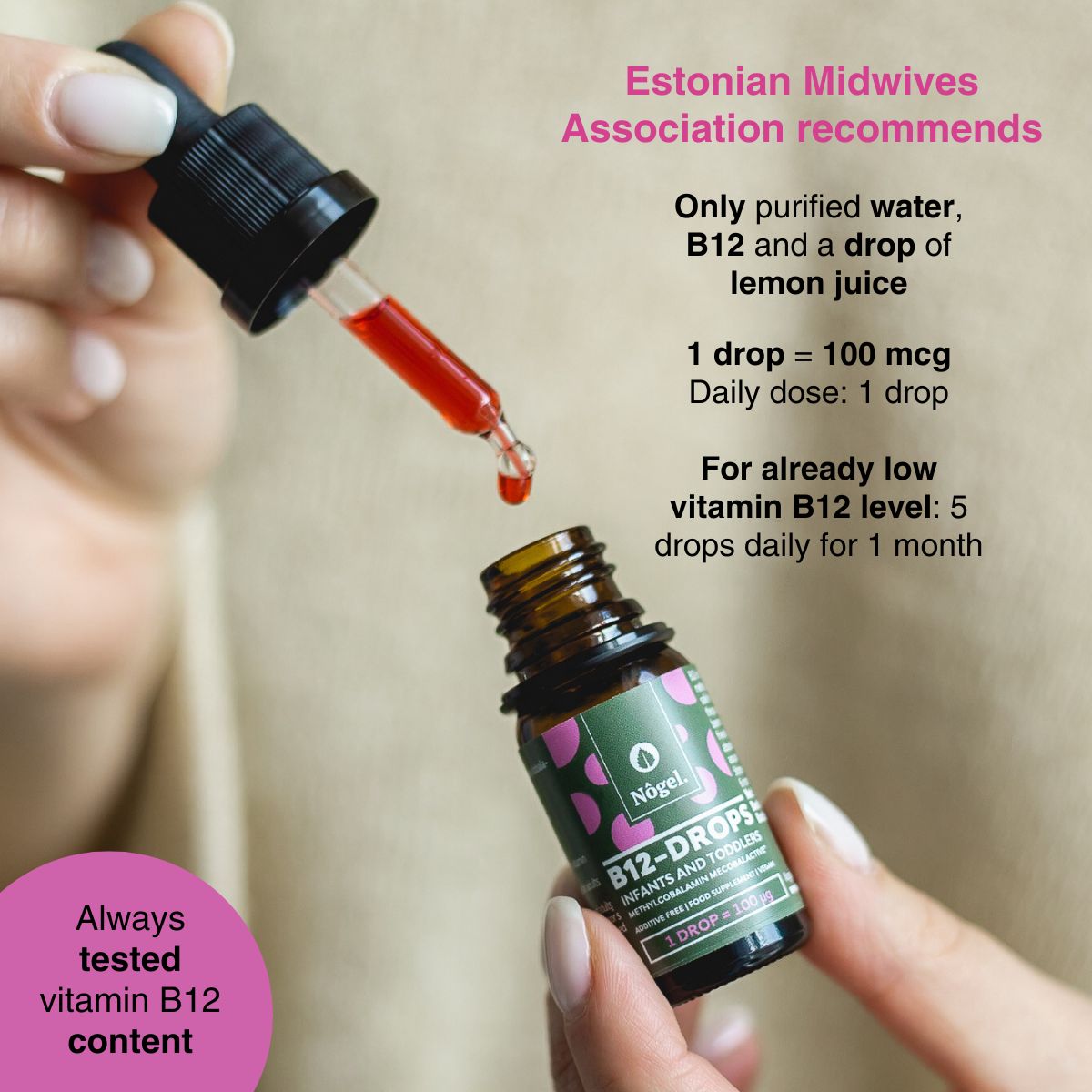 Hi! I wish to thank you for such a good and effective product! Our 3 months old baby had B12 15.2.22 203. We used 400 mcg daily like our doctor told us and 5.4 the result was 1275. The doctor said we can stop using now as the level is good. I plan to continue using just 1 drop a day. Thanks again for such a good product! And our family always enjoys using our own Estonian products 🙂