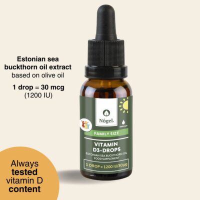 D-drops with Estonian sea buckthorn oil, FAMILY SIZE, 1200 IU/30 μg, 30 ml