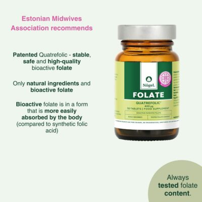 Folate, i.e. vitamin B9, is a very important vitamin for women planning pregnancy and already pregnant. Folate supplementation increases pregnant woman´s folate level. Mother´s low folate level is a risk factor of neural tube defect for the developing baby. A beneficial affect is obtained with daily folate supplementation of 400 μg at least one month before and up to 3 months after getting pregnant.