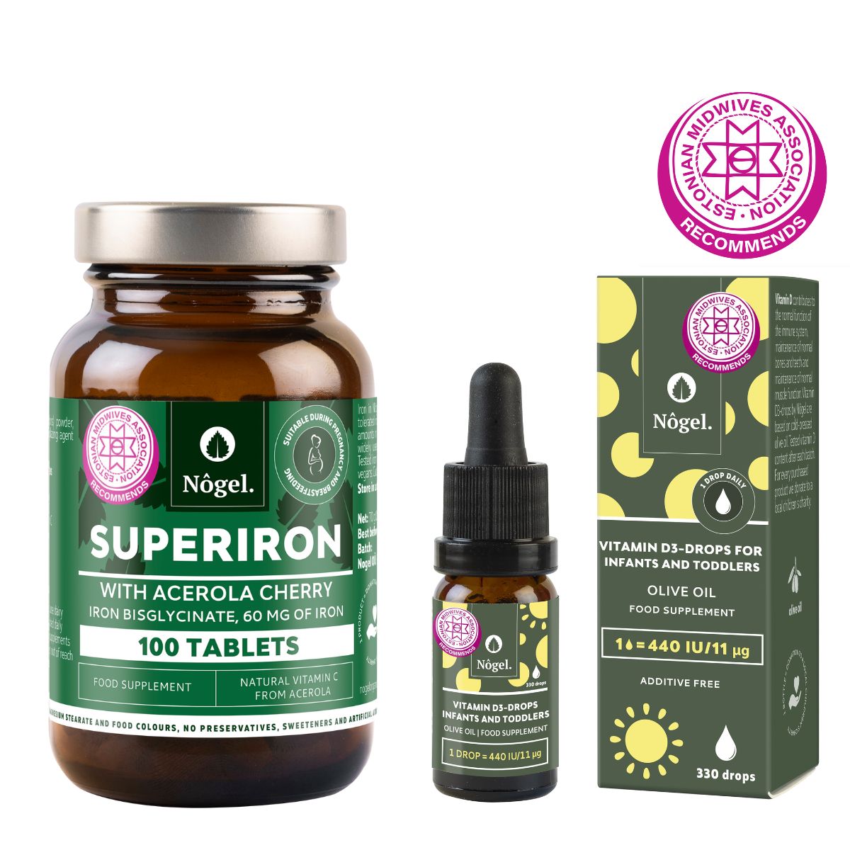 Pregnancy combo: Superiron 60 mg and D3-drops for babies and toddlers 440 IU/11 μg, 10 ml