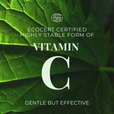 We use Ecocert certified vitamin C stabilized form, ascorbyl glucoside, which is much gentler to your skin compared to other L-ascorbic acid forms. Ascorbyl glucoside is the best performing vitamin C form in clinical studies that has all three properties common to vitamin C: antioxidant and protection of free radicals, increase in collagen production, decrease in pigmentation. Unlike oil-soluble ascorbyl palmitate in case it was found in in-vitro studies that it may be even harmful in case contact with sun UVB rays occurs and which did not change to pure vitamin C when in contact with skin (did not rise the concentration of pure vitamin C in skin), in-vitro studies have found that ascorbyl glucoside is absorbed via skin and changes to pure vitamin C – the good properties come from here.
